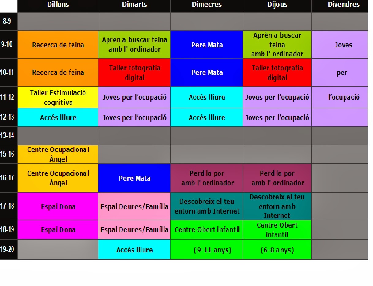 Aqui teniu l’horari de les activitats obertes al públic al Punt Òmnia Amposta per al primer trimestre del 2014. Per poder accedir a les activitats primer us heu d’inscriure al Punt Òmnia i consultar la disponibilitat de places.