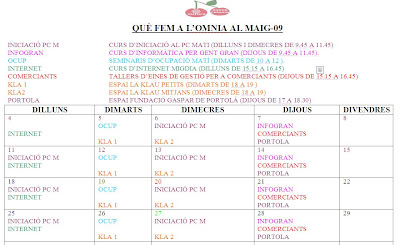 Aquest mes de maig encetem nous cursos a l’Omnia. En aquest cas les novetats són els cursos per a COMERCIANTS i els de GENT GRAN. A més, hi serem presents a la Fira de la Cirera amb activitats que ja us comentarem.