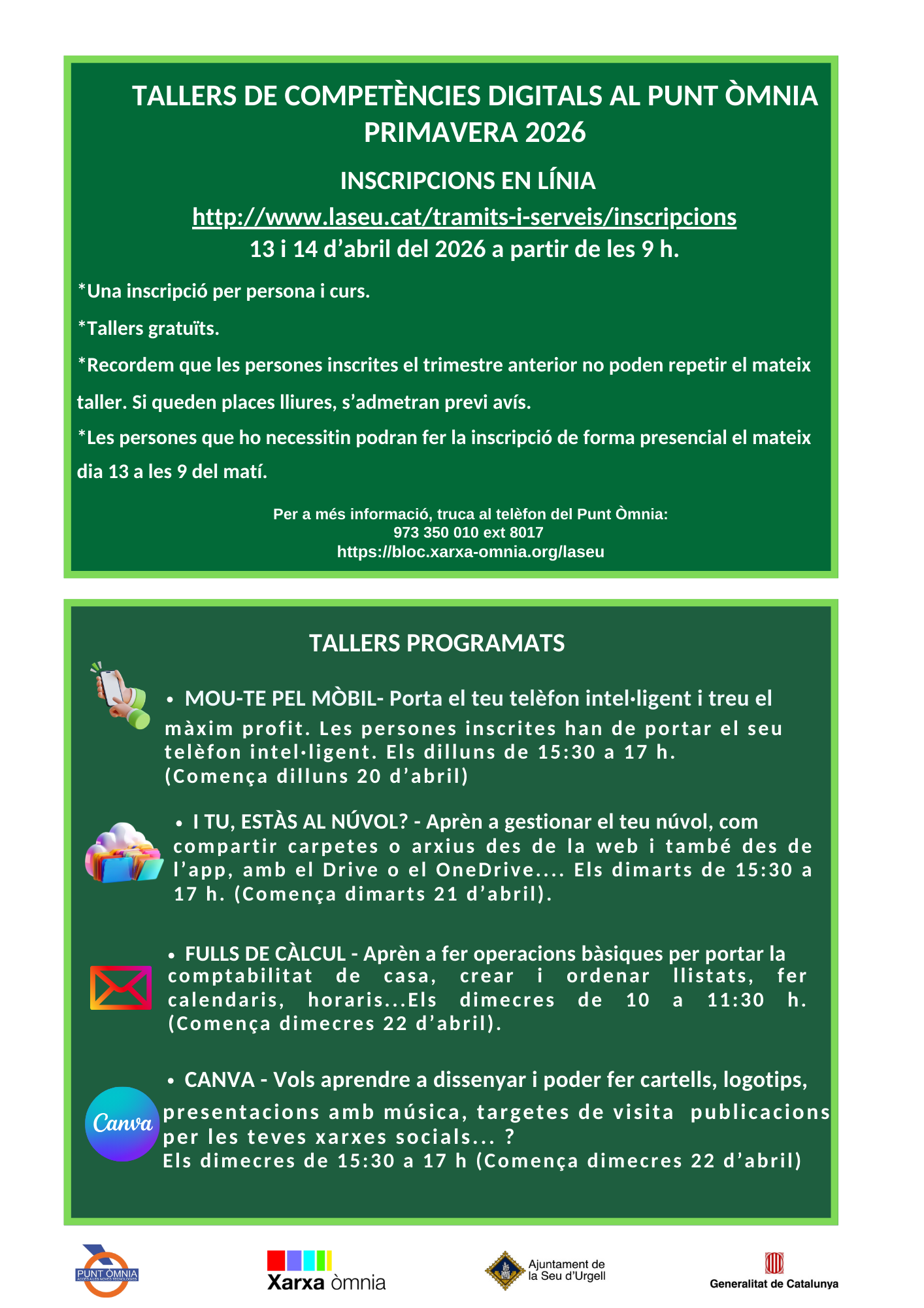 http://www.laseu.cat/tramits-i-serveis/inscripcions el dies 13 i 14 d’abril del 2026 a partir de les 9 h.