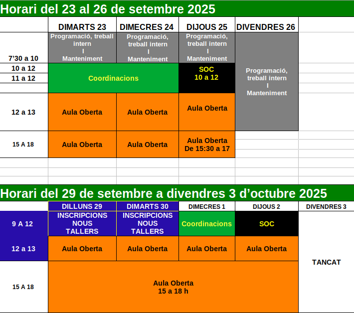RECORDA – Les hores d’accés lliure són hores per poder accedir al nostre espai i rebre ajuda si cal o per treballar de forma autònoma.