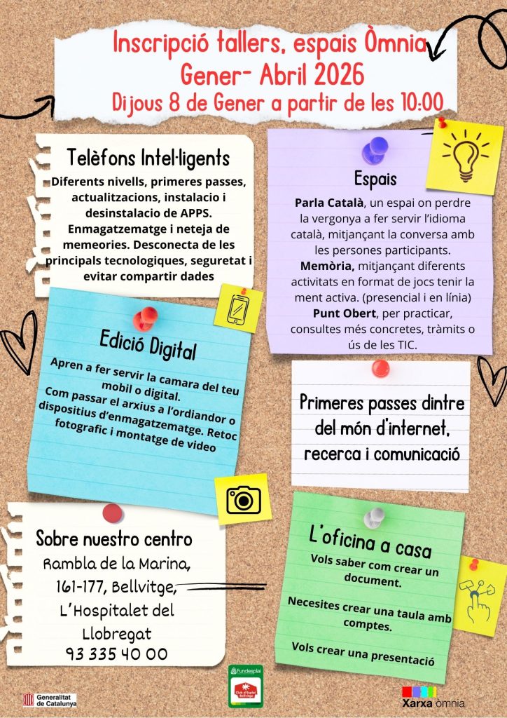 Aquesta setmana a partir del dijous 8 de gener a les 10:00, s’obre el procés d’inscripció dels diferents cursos d’aquest trimestre, fins a omplir els diferents espais.
