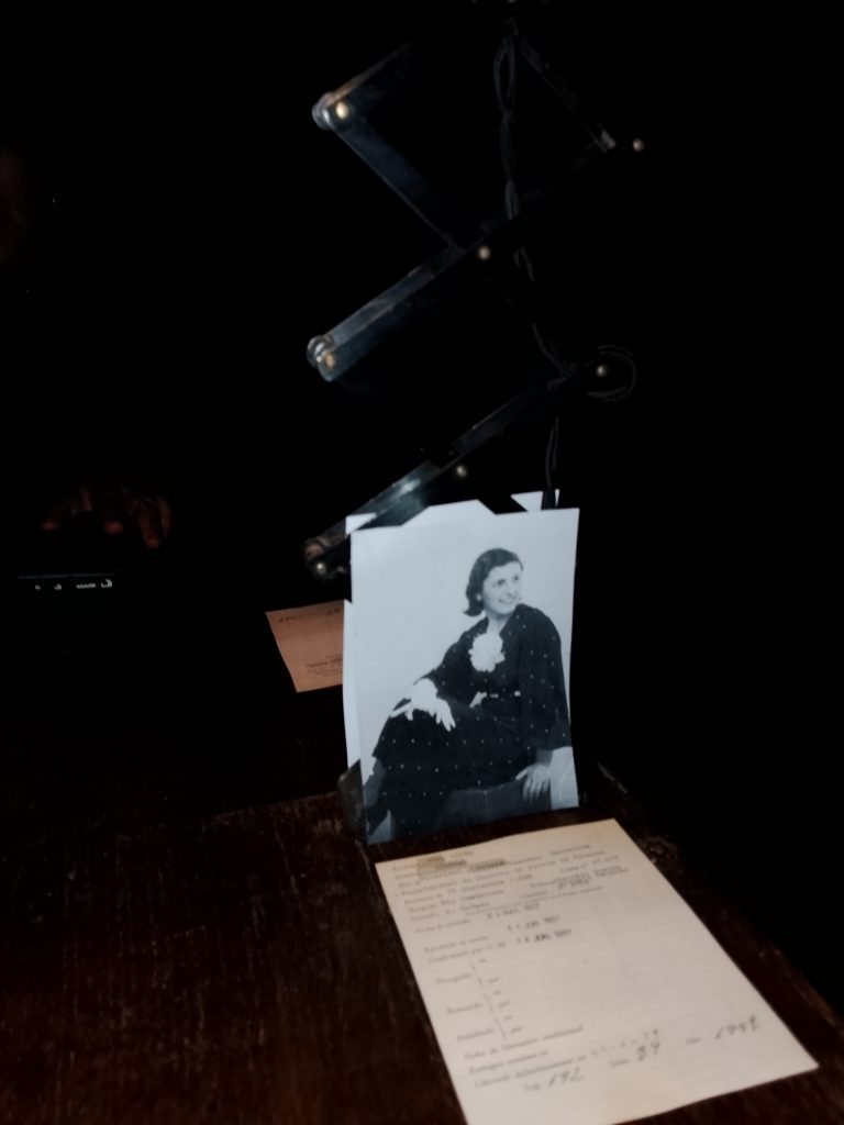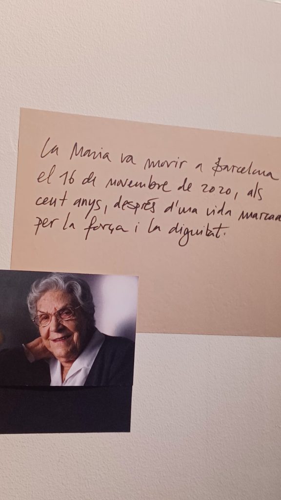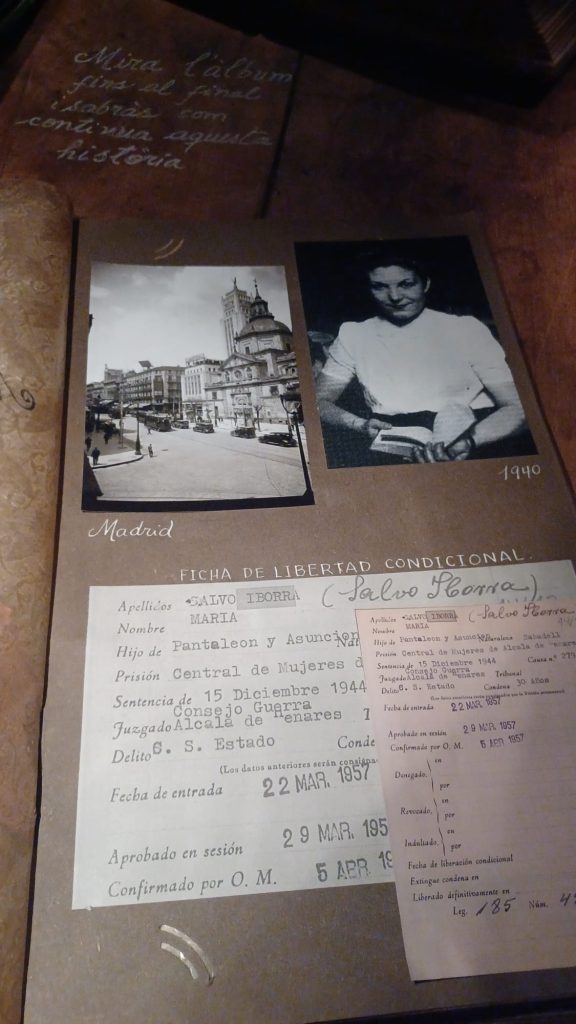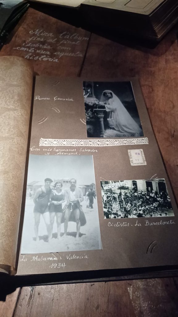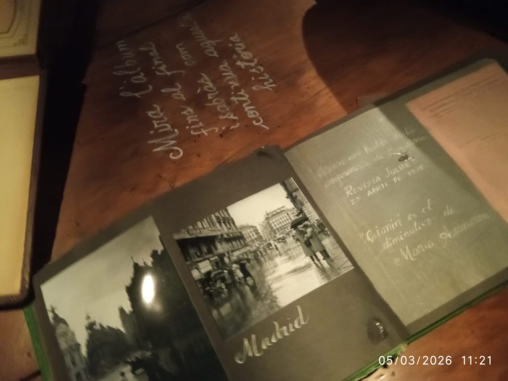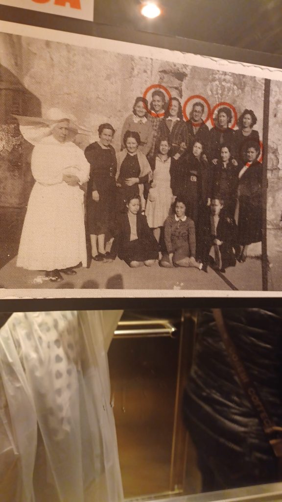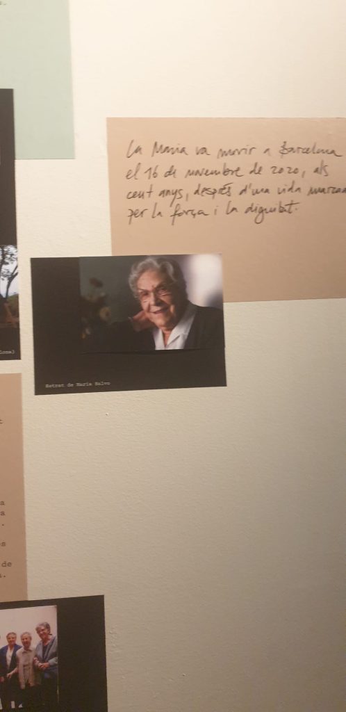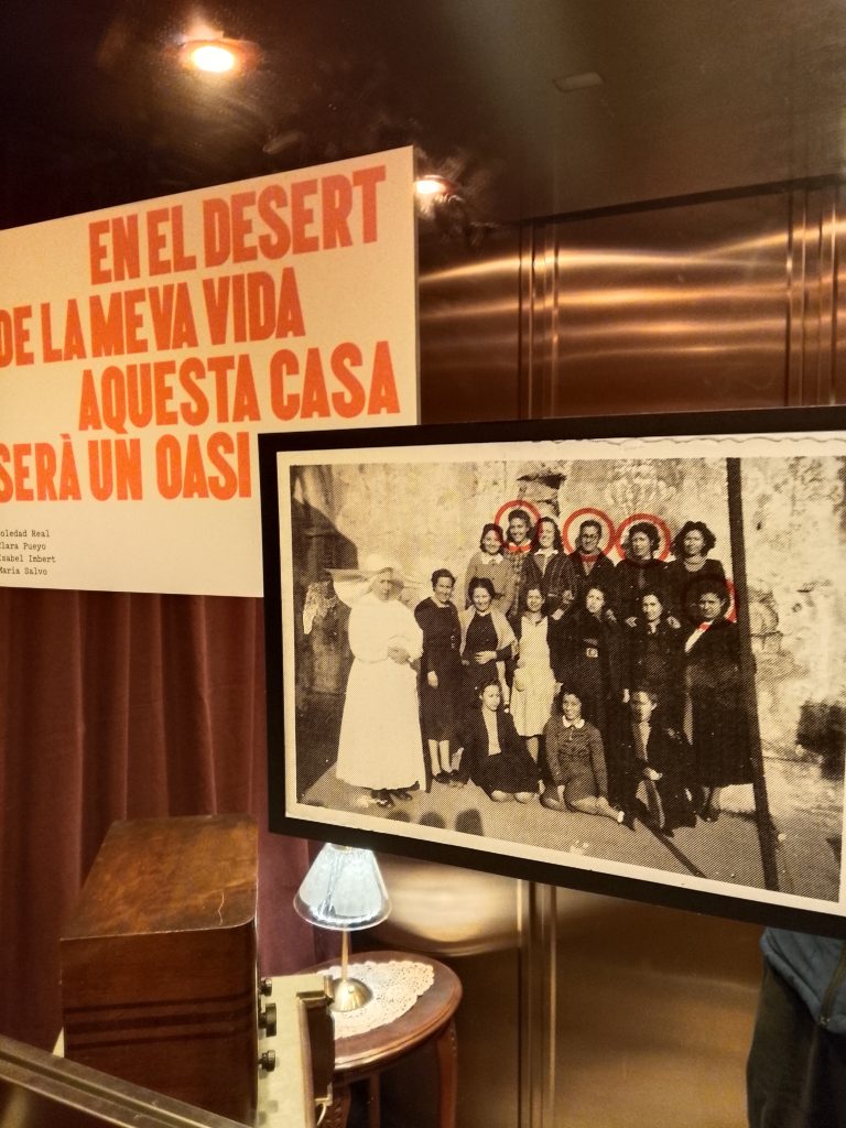 Salimos de la habitación mediante un armario, a una galería donde había unas fotos de la época del barrio de la Barceloneta muy interesante. Una me llamo la atención, era de una de las chicas que vivieron allí, la Maria, que murió el 16 de noviembre del 2020. (Mª Jose)