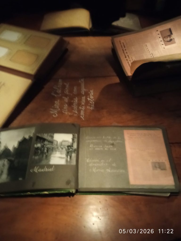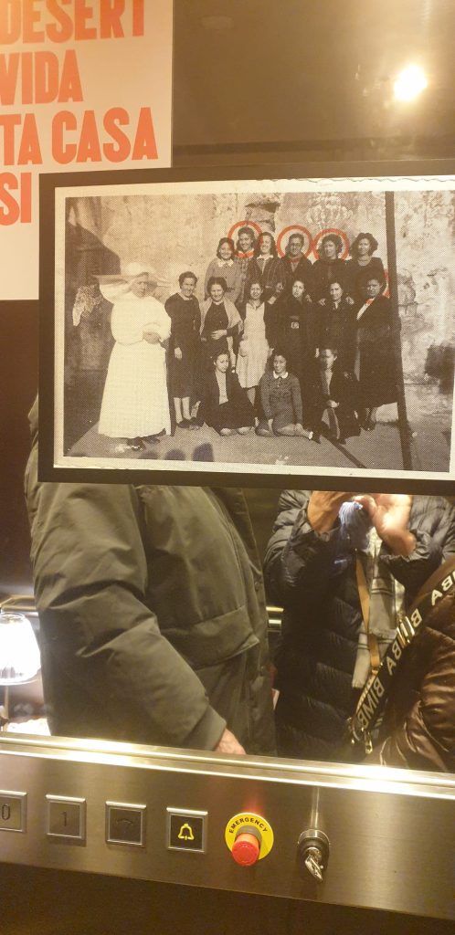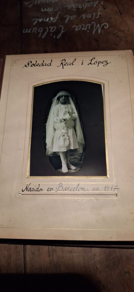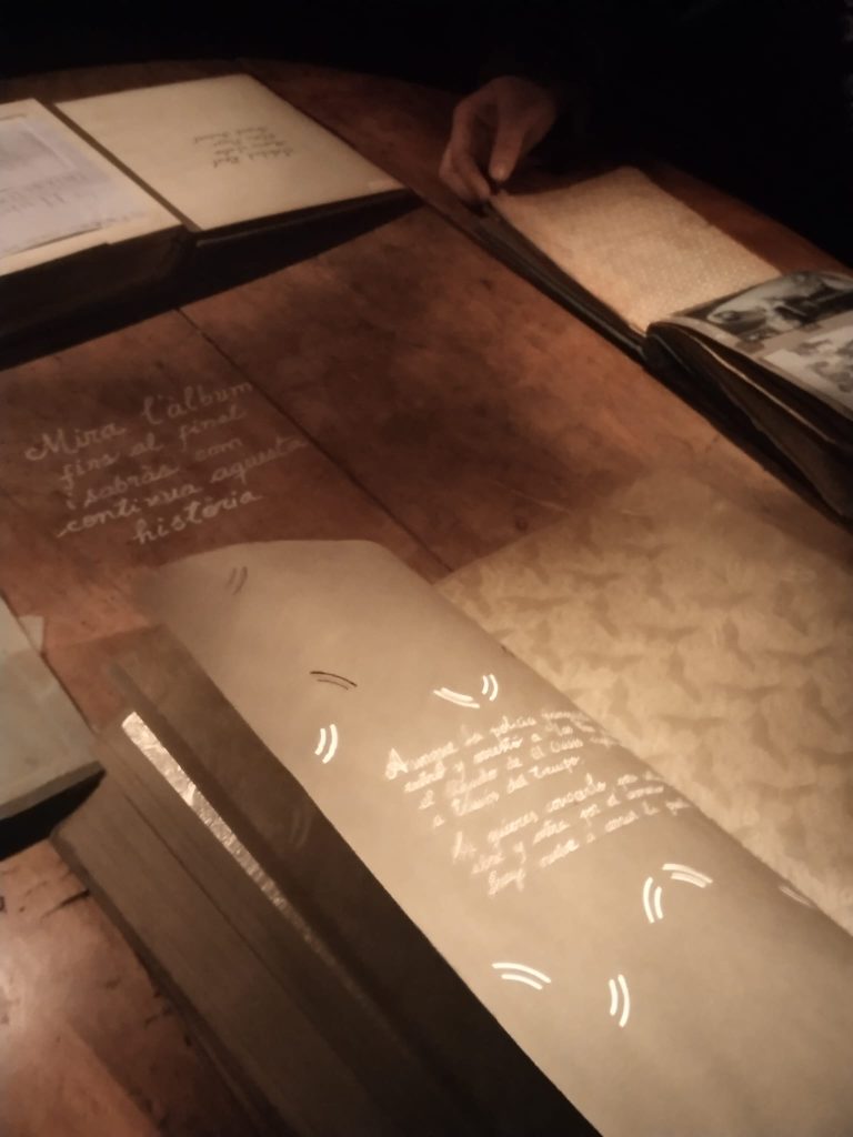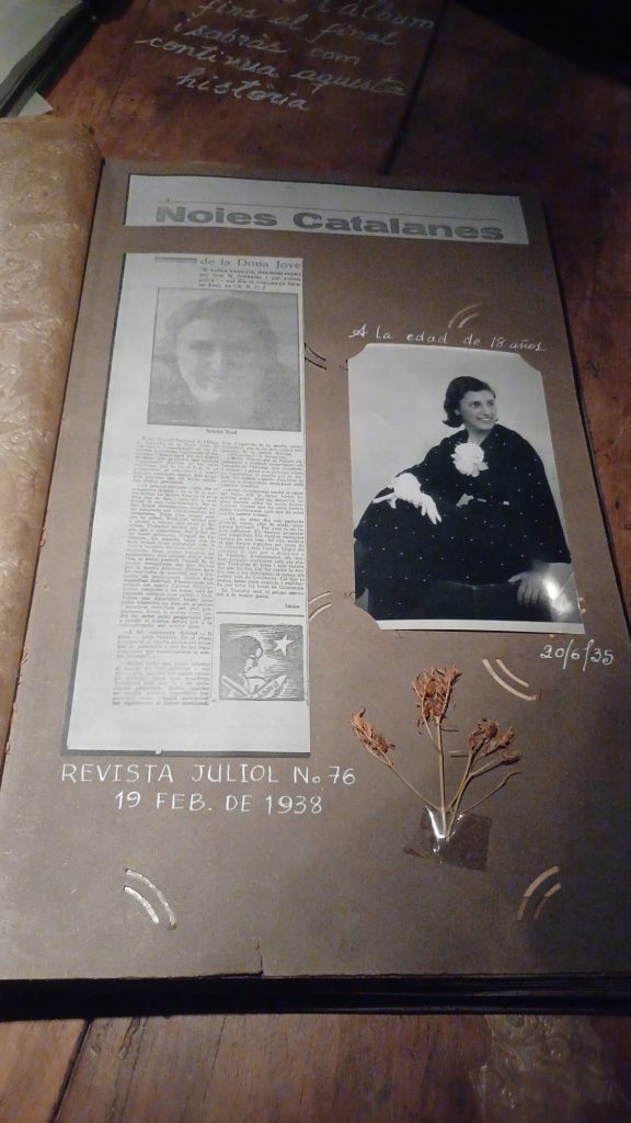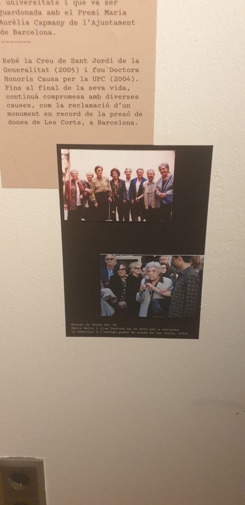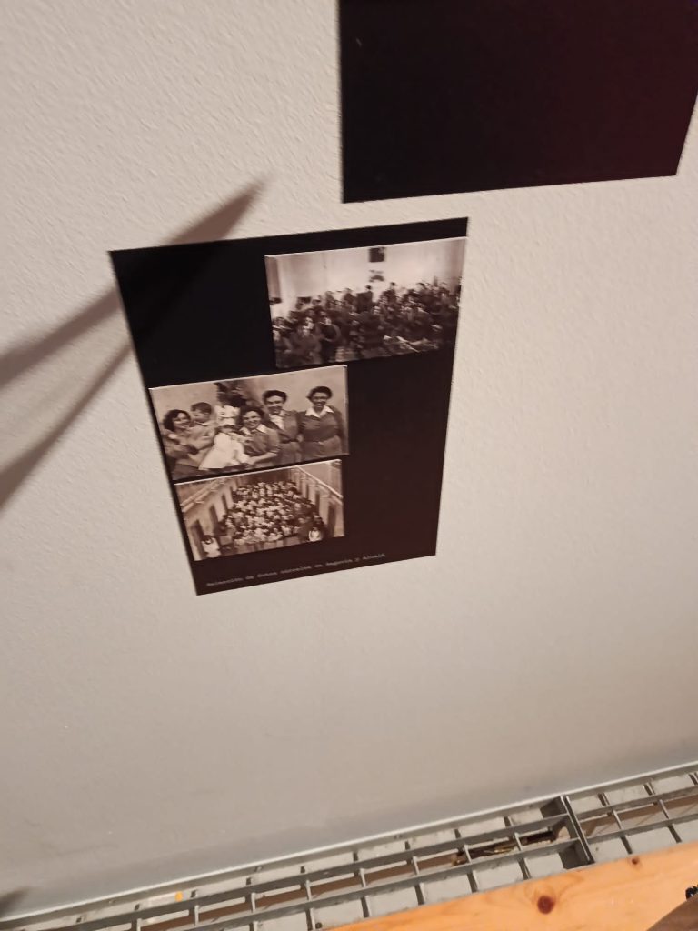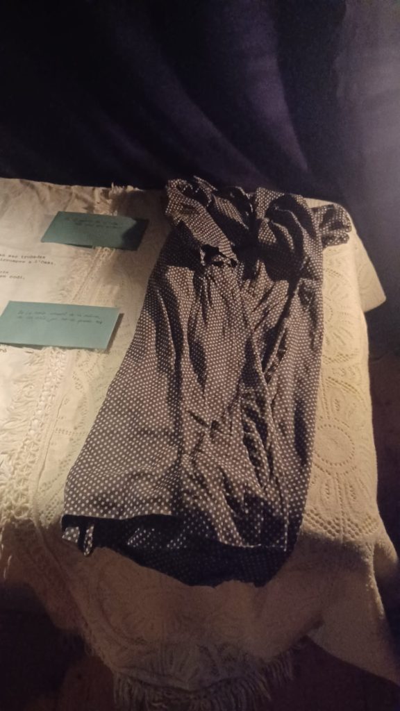 Salimos de la habitación mediante un armario, a una galería donde había unas fotos de la época del barrio de la Barceloneta muy interesante. Una me llamo la atención, era de una de las chicas que vivieron allí, la Maria, que murió el 16 de noviembre del 2020. (Mª Jose)