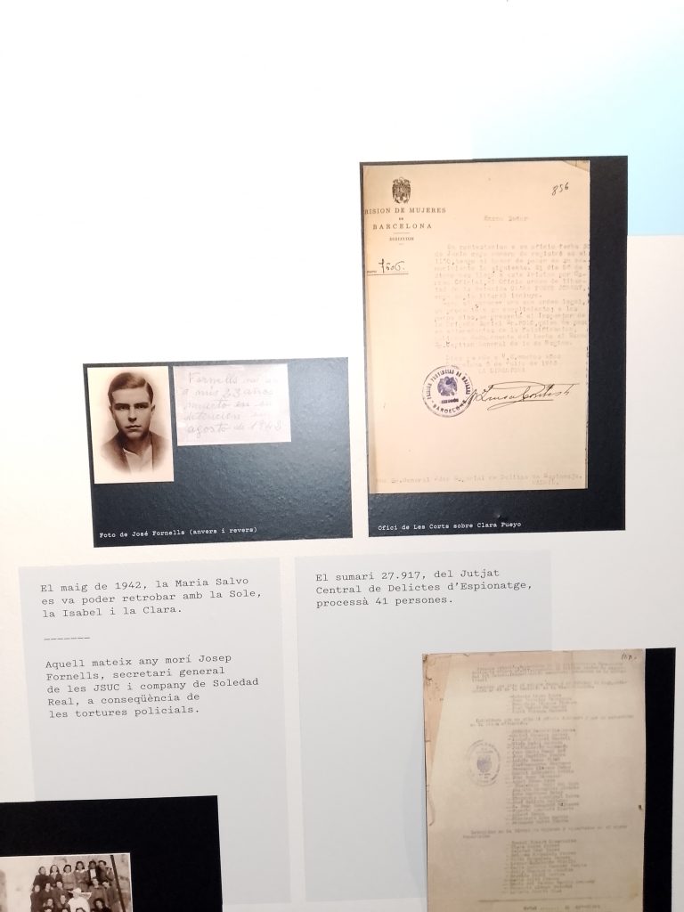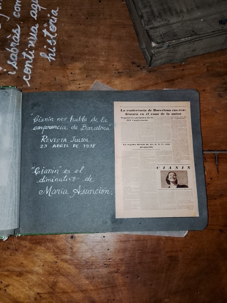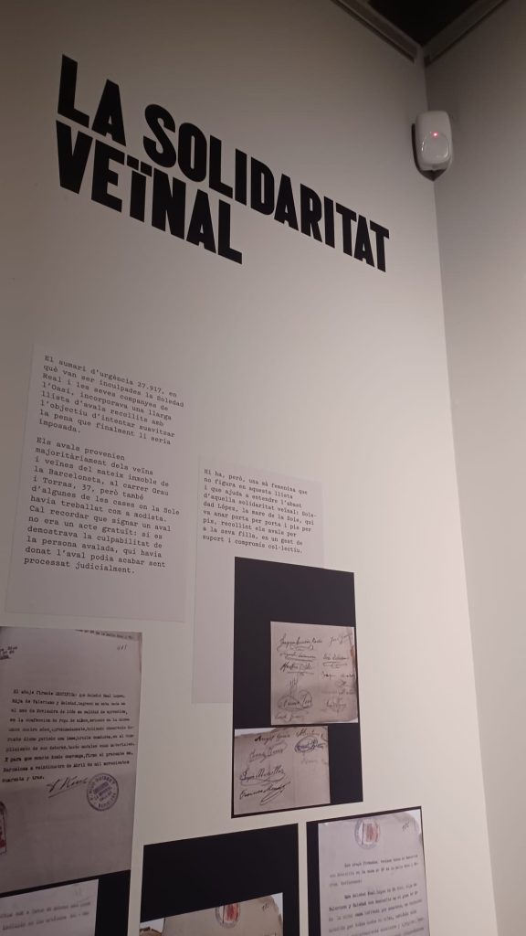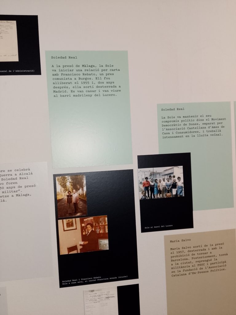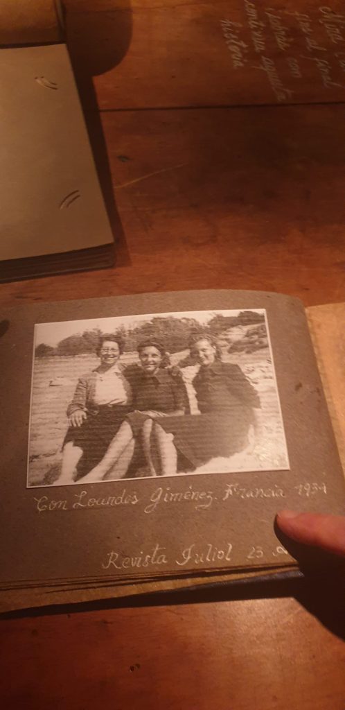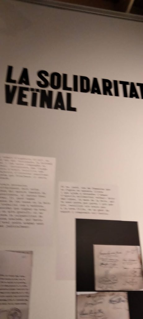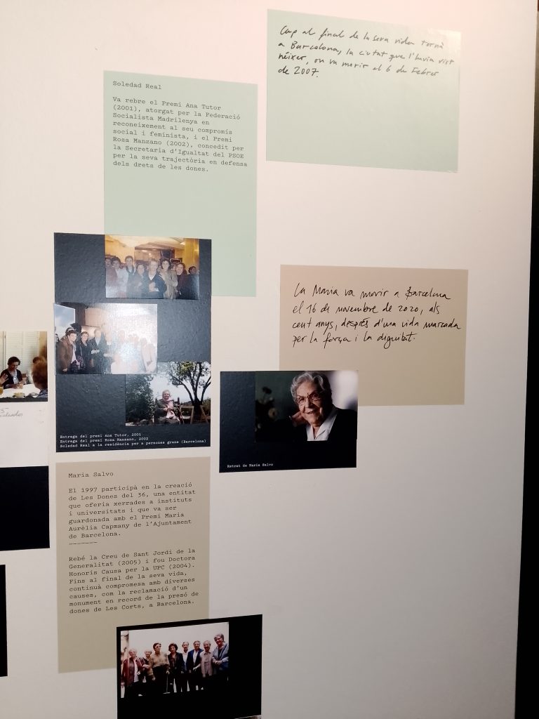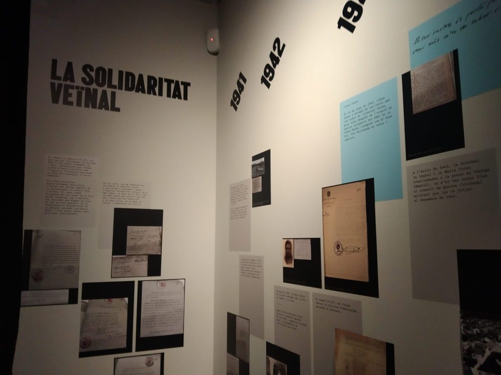Salimos de la habitación mediante un armario, a una galería donde había unas fotos de la época del barrio de la Barceloneta muy interesante. Una me llamo la atención, era de una de las chicas que vivieron allí, la Maria, que murió el 16 de noviembre del 2020. (Mª Jose)