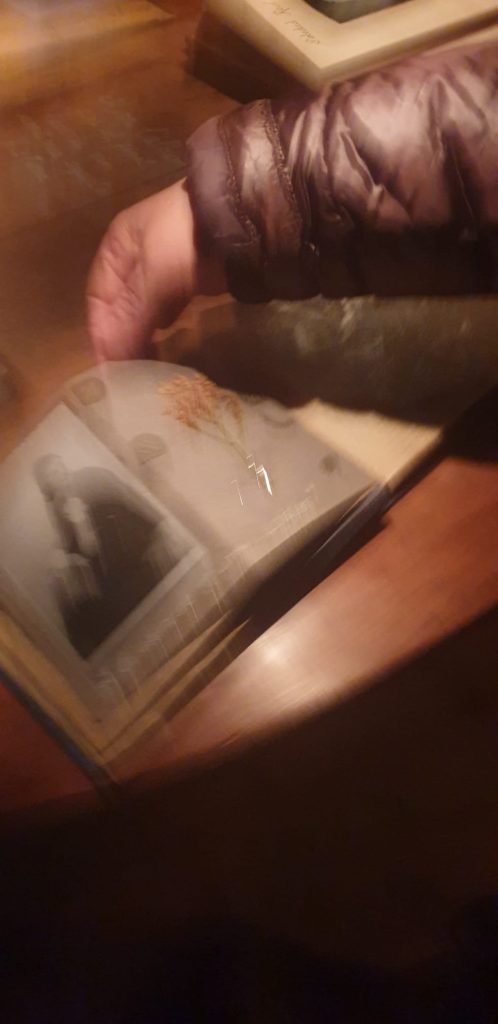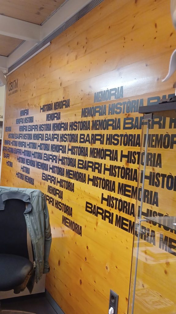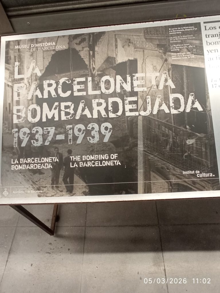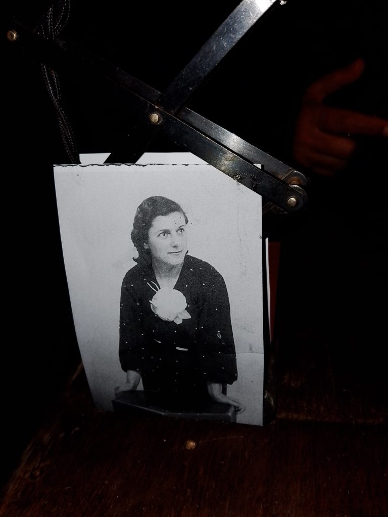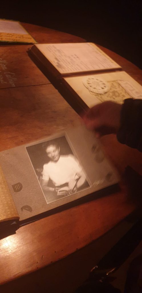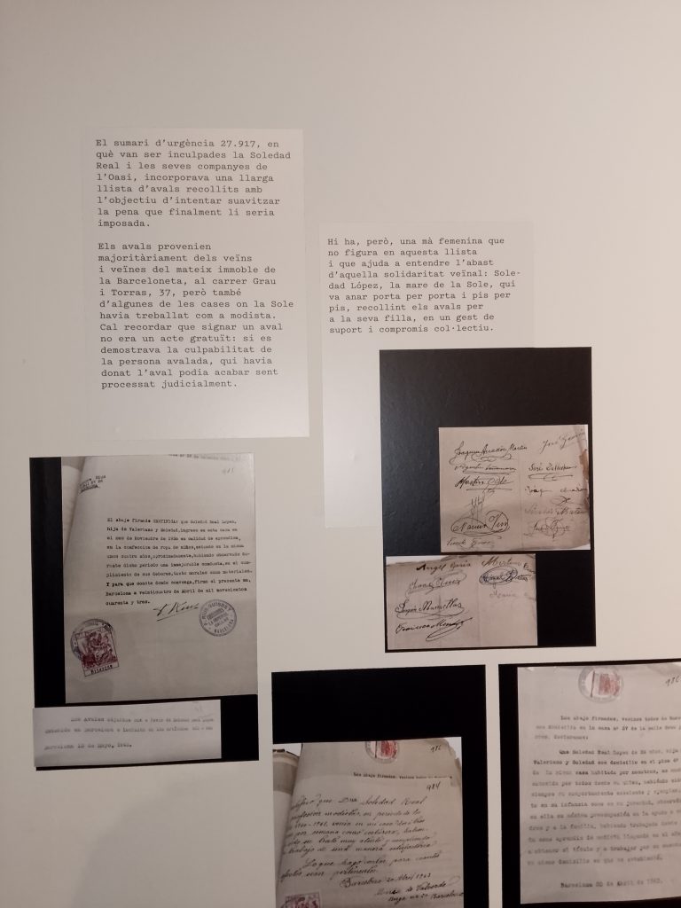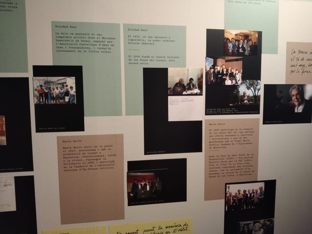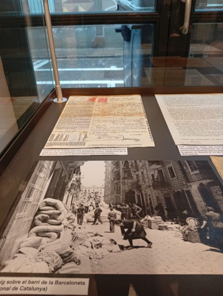 Salimos de la habitación mediante un armario, a una galería donde había unas fotos de la época del barrio de la Barceloneta muy interesante. Una me llamo la atención, era de una de las chicas que vivieron allí, la Maria, que murió el 16 de noviembre del 2020. (Mª Jose)