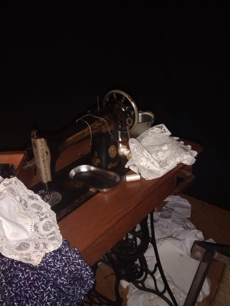 Allí se ve que cosían, porque había una maquina de coser. También álbumes de fotografía con el vestuario del momento y una maquina de escribir. Las octavillas para repartir al personal, lo que luego fue lo que las delato el sonido de la maquina de escribir.