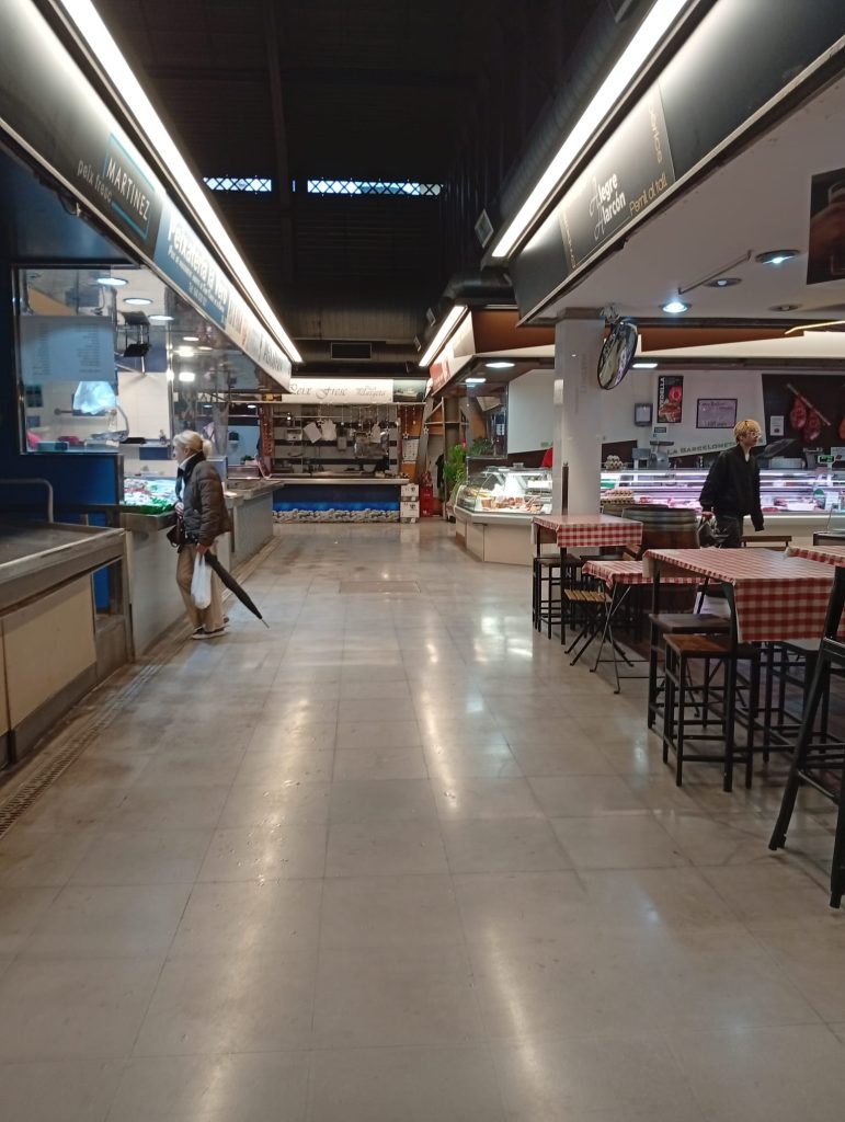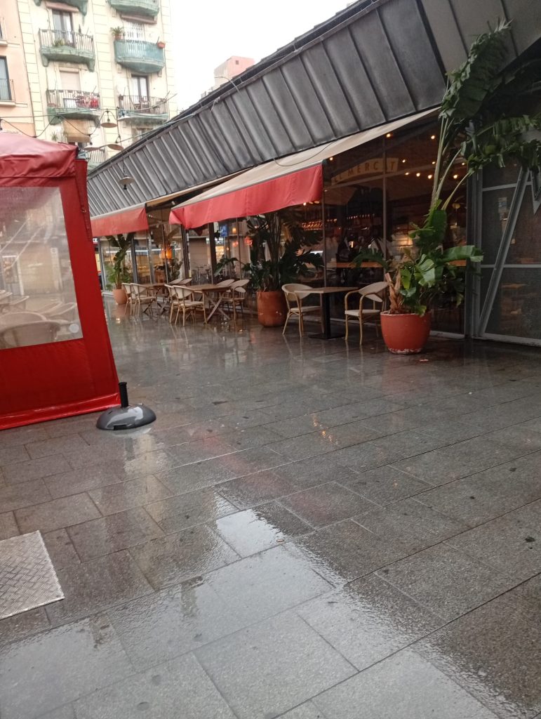 Como la sala es pequeña tuvimos que hacer grupos de 8 personas. Mientras los demás compañeros y compañeras fuimos a visitar el mercado de la Barceloneta, tomar un café y resguardarnos de la lluvia.(Mª Jose)