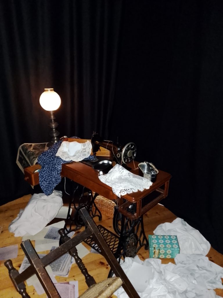 La experiencia inmersiva sensorial esta ambientada en un piso del tiempo de la guerra y hasta después del año 41, estuvieron tres mujeres clandestinamente. (Isabel)