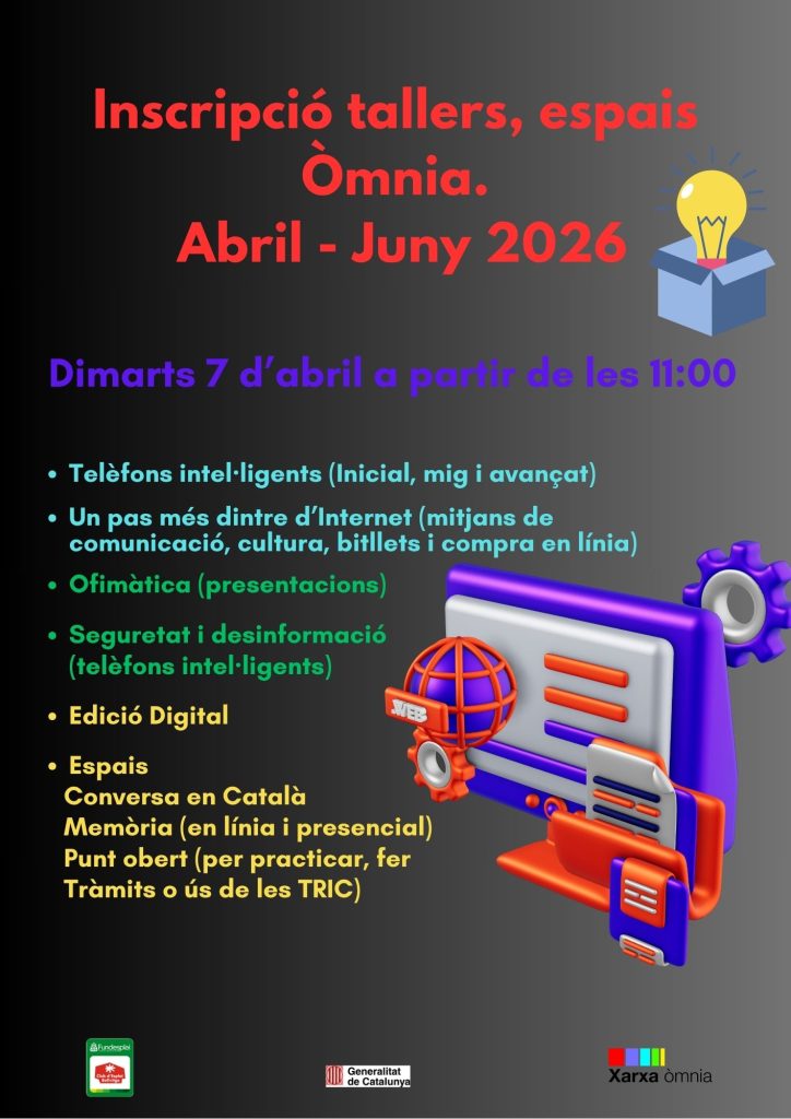 A més a més, continuarem mantenint els espais oberts per a practicar, consultar dubtes concrets, fer tràmits o ús de les TIC.