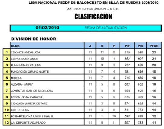 Adjuntem els resultats del Joventut Gam Badalona , en la liga nacional FEDDF de Bàsquet en cadira de rodes 2009 -2010, transmesos pel Gam. Amb un clic sobre la imatge, es pot ampliar la classificació.