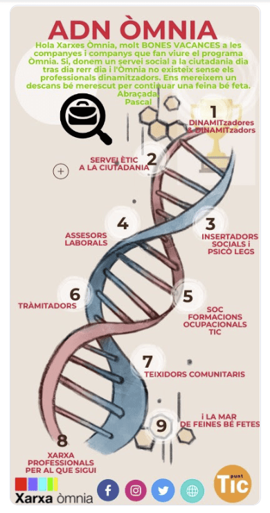 Us desitjo molt BONES VACANCES a les companyes i companys que fan viure el programa Òmnia, les entitats socials, els companys treballadors i agents del territori. Si, donem un servei social a la ciutadania dia enrere dia i l’Òmnia no existeix sense els professionals dinamitzadors. Ens mereixem un descans bé merescut per continuar moltes feines feina bé fetes.